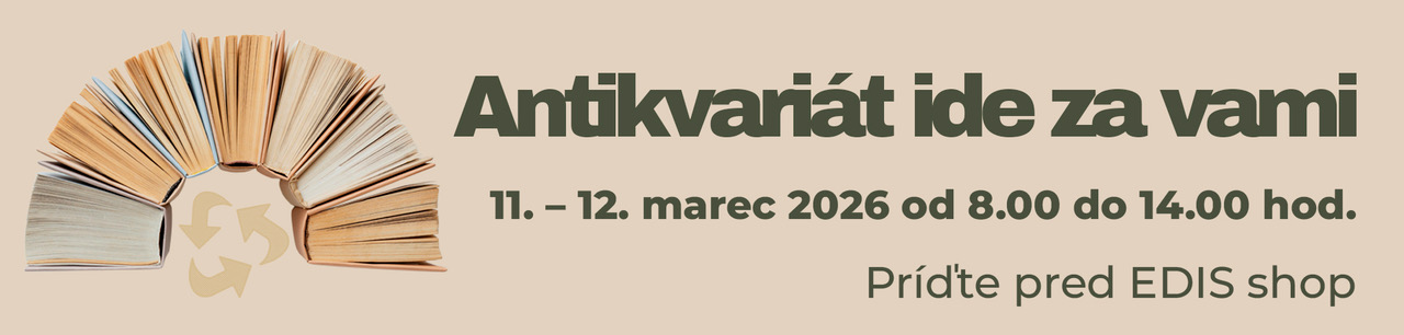 V dňoch 11.3 a 12.3. 2026 od 8:00 do 14:00 hod. príde Antikvariát za vami pred EDIS shop. Budete mať možnosť zakúpiť si za výhodné ceny už bežne nedostupné publikácie.