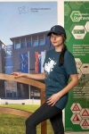 Tmavomodrá 5-dielna šiltovka so zakriveným šiltom, vyšívanými ventilačnými očkami a zapínaním s kovovou sponou, vyrobená zo 100% recyklovanej bavlny.