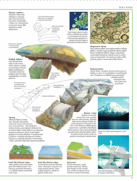 Ďalší zo série obrazových sprievodcov vysvetľuje, ako vznikla naša planéta Zem a ako sa v priebehu času mení zvnútra aj zvonka. Vďaka názorným ilustráciám zistíte, čo sa deje vnútri sopky či pod ľadovcom a ako hlbokomorské usadeniny vytvorili mohutné horské štíty. Dozviete sa, prečo gejzíry striekajú, prečo sa zem pri zemetrasení otriasa, kde sa vytvára zemská kôra a kde zaniká, ale aj to, ako vietor, dážď a ľad formujú krajinu.