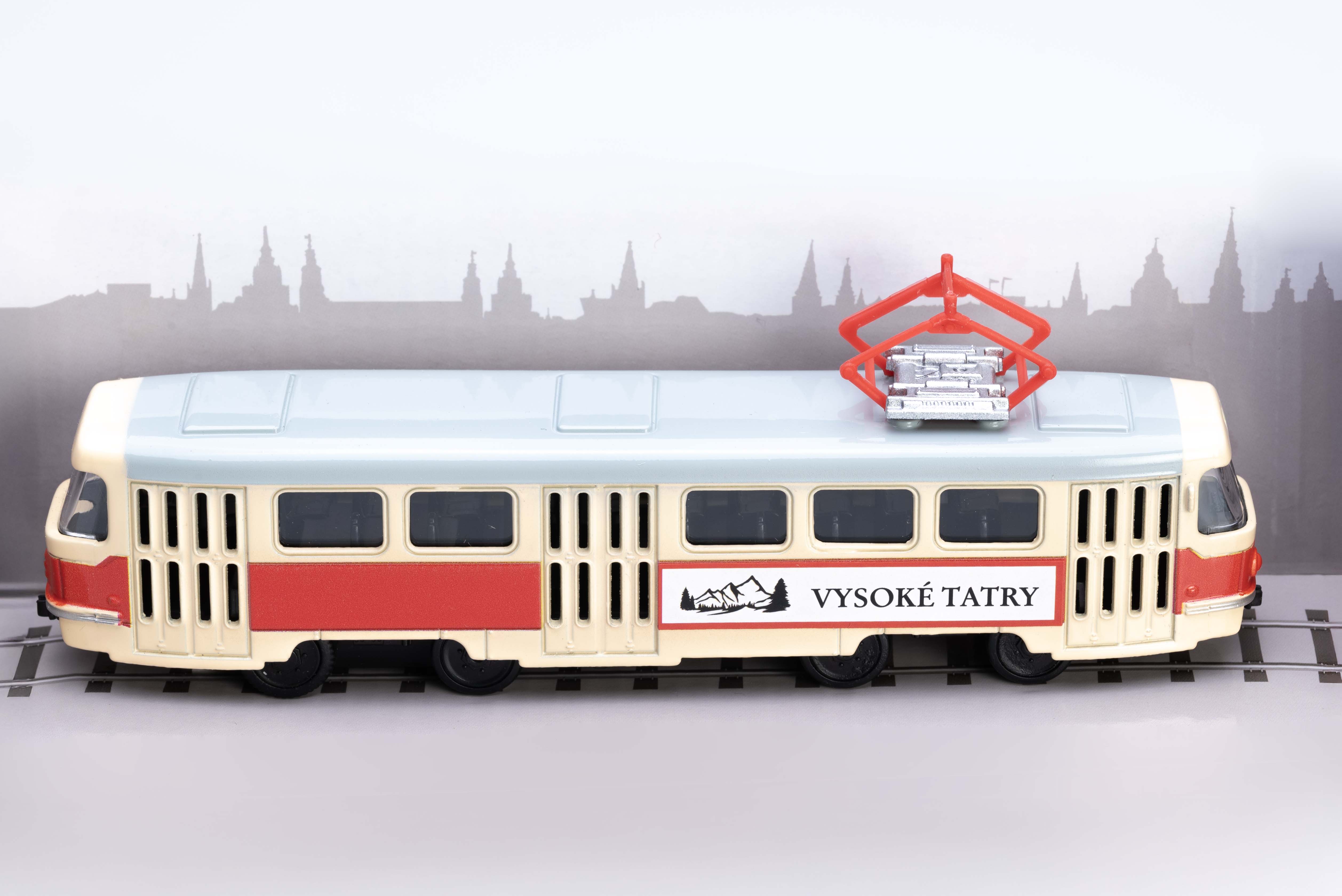 Originálna kovová retro električka VYSOKÉ TATRY. Odporúčame spolu s knihou "Tatranské úzkokoľajky v zrkadle času".